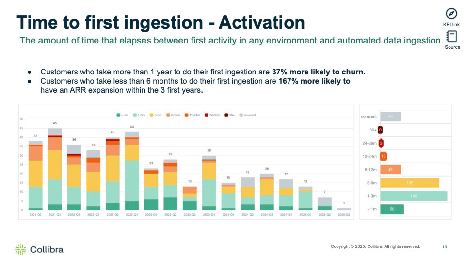 - Time to First Ingestion (Activation) — Faster ingestion strongly correlated with expansion and reduced churn